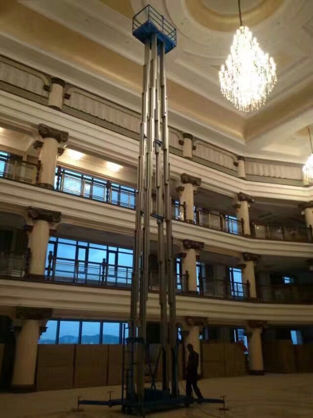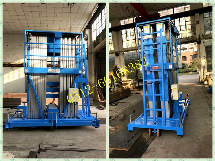 六桅柱式升降平臺采用2+1形式,由下面四柱桅柱,上面二柱桅柱疊加而成,滿足了超高登高作業的要求。