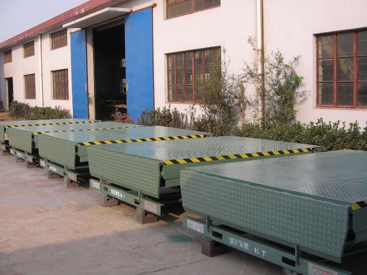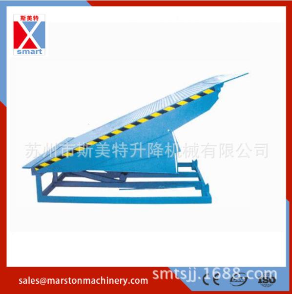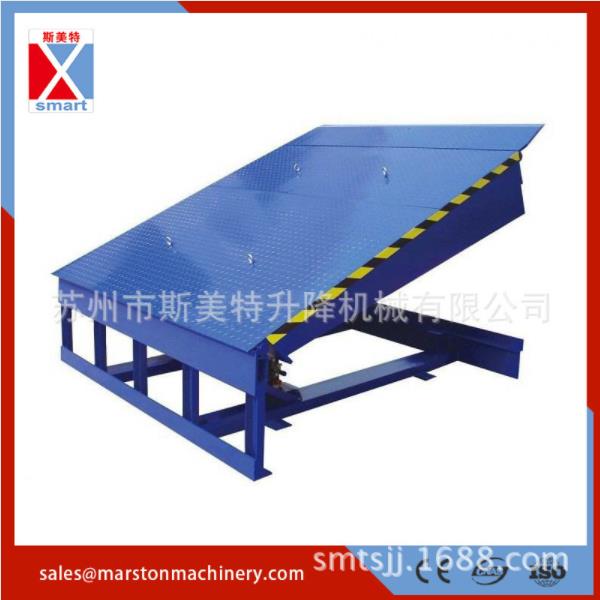 登車(chē)橋前端的可翻轉(zhuǎn)搭接扳在裝卸貨物時(shí)始終緊貼車(chē)廂。登車(chē)橋的角度調(diào)節(jié)功能使使貨車(chē)與建筑物地面之間架起一座橋梁,