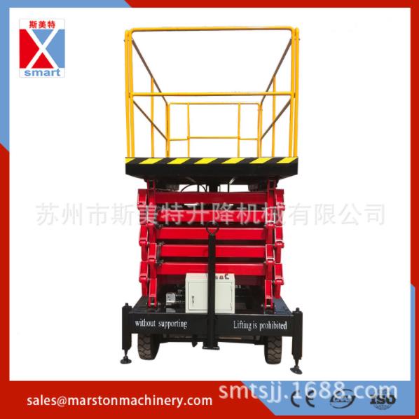 用途主要用于載人高空作業的檢修、維護、更換物件、保養、清潔、布景等。適用場所工廠、礦場、市政管理、樹木檢修、電氣線路、鐵路、公路、機場、郵電、石油、電力、大廳、賓館、會堂裝飾、化工、醫藥、航天、部隊、核電、攝影、消防、體育館、小區物業、建筑布置、配套清洗公司。 產品優勢1、3-18米高度任意定制生產,范圍廣,用途多 2、動力配置:直交流兩用、直流、手搖動力、380V、220V 3、剪叉為高強度錳鋼矩形管,強度高 4、防滑花紋板,寬大作業平臺,可適合多人作業 5、停電時配有應急下降裝置 6、特制的鑄鋼鉸耳,耐磨性能好,使用壽命長 7、配置工具箱:可放隨機的工具,滿足快捷維修 8、伸縮式調節支撐腿,確保使用過程穩定可靠 9、銷軸為45#碳圓鋼精加工而成,強度高,耐磨性好 10、配用400-8,500-8,600-9耐磨輪胎,使用壽命長 11、一米高四面護欄,確保作業安全 12、行程開關、中間繼電器采用法國施耐德 13、高品質密封件:日本-NOK